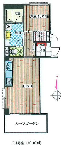 | 使用部分面積 | 40.07㎡ | バルコニー | ルーフバルコニー |